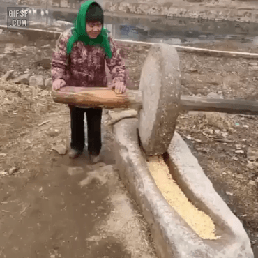 유머GIF | 고전방식 옥수수가루 만들기.gif